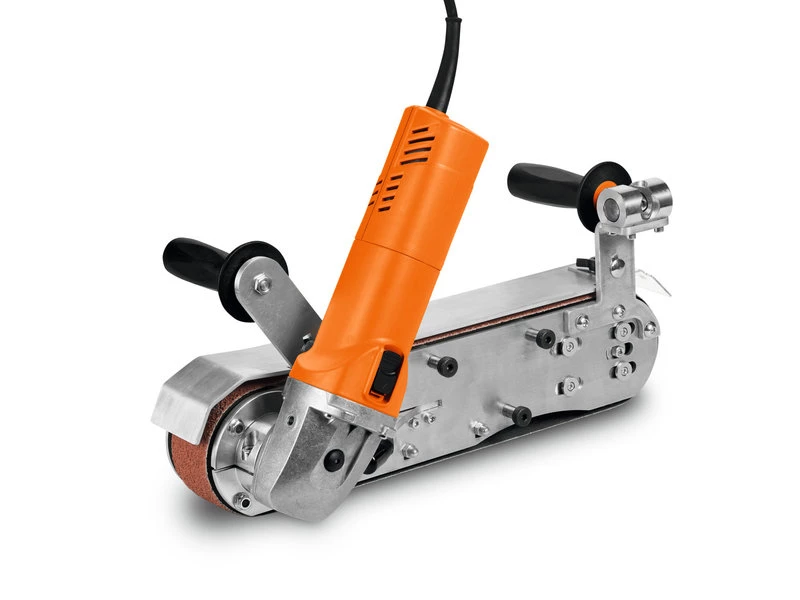 - Ponceuse à bande manuelle universelle pour la résolution de problèmes locaux, idéale pour le traitement de l’acier inoxydable.