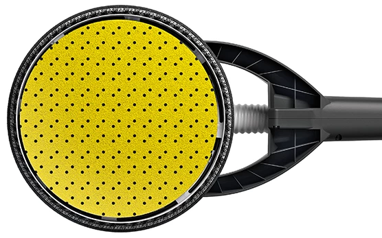 - Le palier cardanique de la tête de ponçage assure une grande flexibilité et une adaptation optimale à toute inclinaison et à tout angle lors du ponçage des murs et des plafonds.