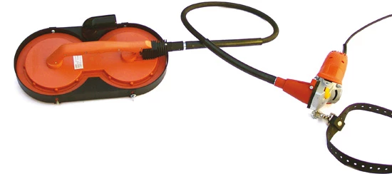 - Le moteur est transporté séparément de la pièce à main (seulement 2,2 kg), soit sur une sangle de transport, soit sur une bandoulière. Le faible poids permet de travailler longtemps sans se fatiguer.